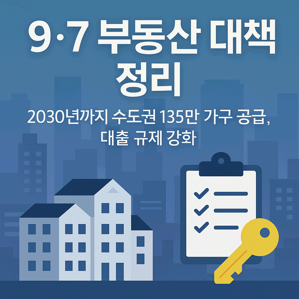 2025년 9월 7일, 정부가 새로운 부동산 공급 및 대출 규제 대책을 발표했습니다. 이름하여 **‘9·7 부동산 공급 대책’**인데요, 이번 정책은 크게 두 가지 방향에서 진행됩니다. 첫째, 2030년까지 수도권에서 안정적인 주택 공급 확대를 추진하고, 둘째, 대출 규제를 강화하여 투기 수요를 억제하겠다는 것이 핵심입니다. 이번 글에서는 발표된 주요 내용과 의미, 그리고 전문가들의 평가와 우려까지 종합적으로 정리해보겠습니다. 1. 수도권 주택 공급 확대: 2030년까지 135만 가구 목표정부는 수도권에서 2030년까지 총 135만 가구를 착공하겠다는 목표를 내놨습니다. 연간으로 환산하면 약 27만 가구 수준입니다. 단순히 공급 물량만 늘리는 것이 아니라, 공급 속도를 높이고 공공의 역할을 강화하는 것이..
